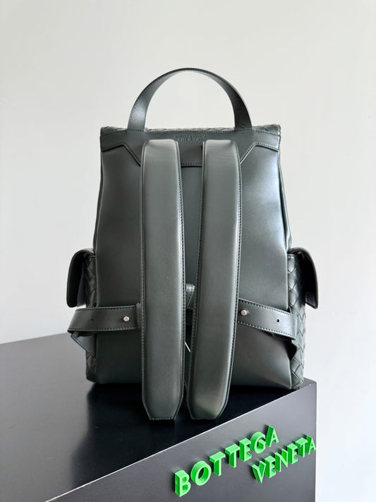 BOTTEGA VENETA 25S BACK TO SCHOOL BACKPACK 39 IN MUTED TEAL GRAY CALFSKIN