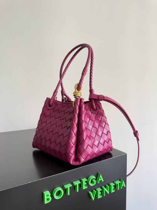 BOTTEGA VENETA 25S SMALL PARACHUTE 29 IN RASPBERRY PINK CALFSKIN GOLD HARDWARE