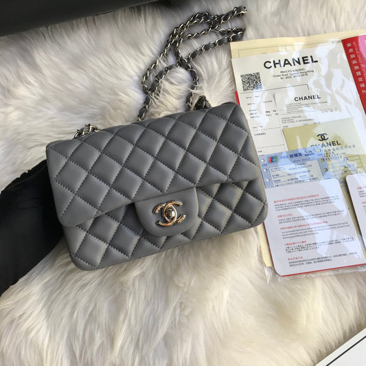 CC MINI 20 BAG IN SHADOW GREY CALFSKIN GOLD HARDWARE