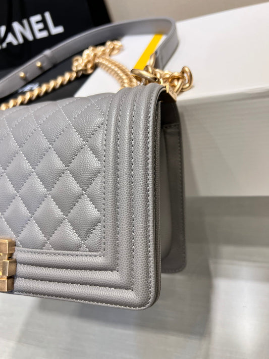 BOY BAG MEDIUM 25 GREY CAVIAR GOLD HARDWARE