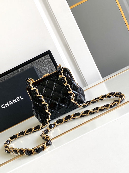 CC MINI 13 CLUTCH WITH STRAP IN BLACK LAMBSKIN ATTACH BOW