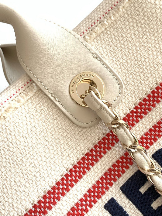 SHOPPING BAG 34 IN WHITE RED AND NAVY BLUE CANVAS