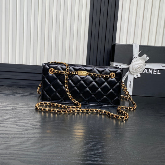 MINI FLAP BAG 12 IN BLACK QUILTED LAMBSKIN GOLD HARDWARE