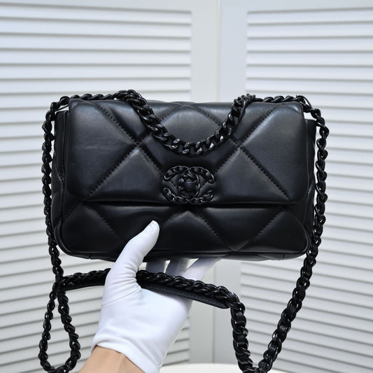 19 FLAP BAG 26CM ALL BLACK