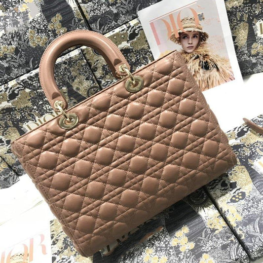 LARGE LADY BAG 32CM BEIGE CANNAGE LAMBSKIN