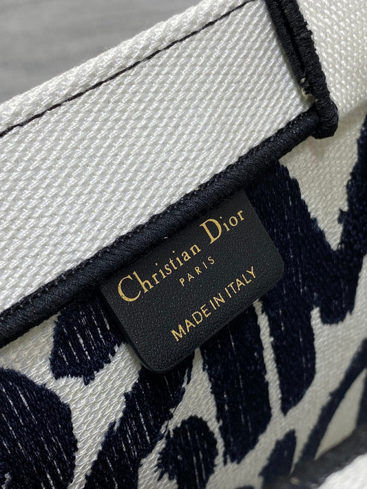 BOOK TOTE 36 BEIGE AND BLACK MISS DIOR GRAFFITI EMBROIDERY