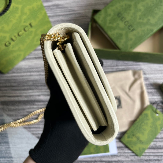 BLONDIE INTERLOCK MINI SHOULDER BAG 12 IN WHITE CALFSKIN GOLD CHAIN