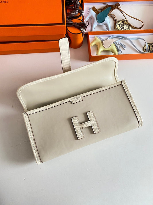 JIGE ELAN 29 CLUTCH IN BISQUE BEIGE CALFSKIN WITH LIZARD SKIN (MADE-TO-ODER)