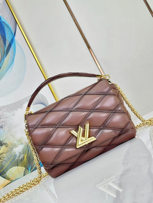 GO-14 MM 23 IN WHITE BROWN QUILTED LAMBSKIN GOLD HARDWARE