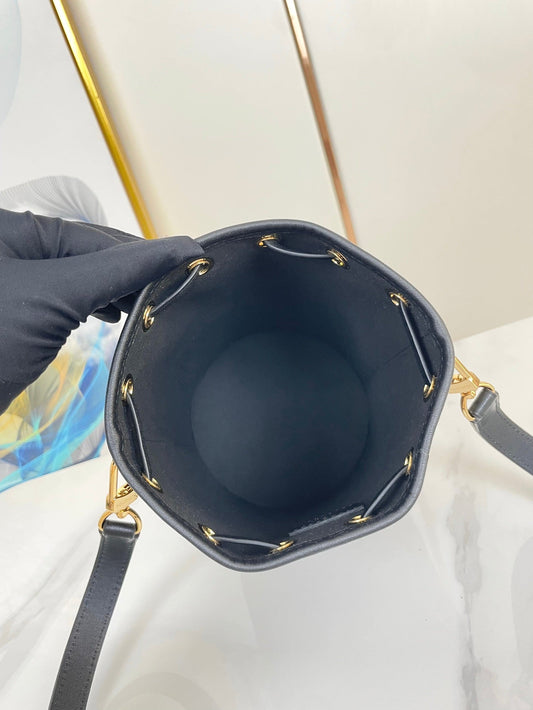 SIDE TRUNK MINI 18 IN BLACK LAMBSKIN WITH CRISS CROSS PATTERN GOLD HARDWARE