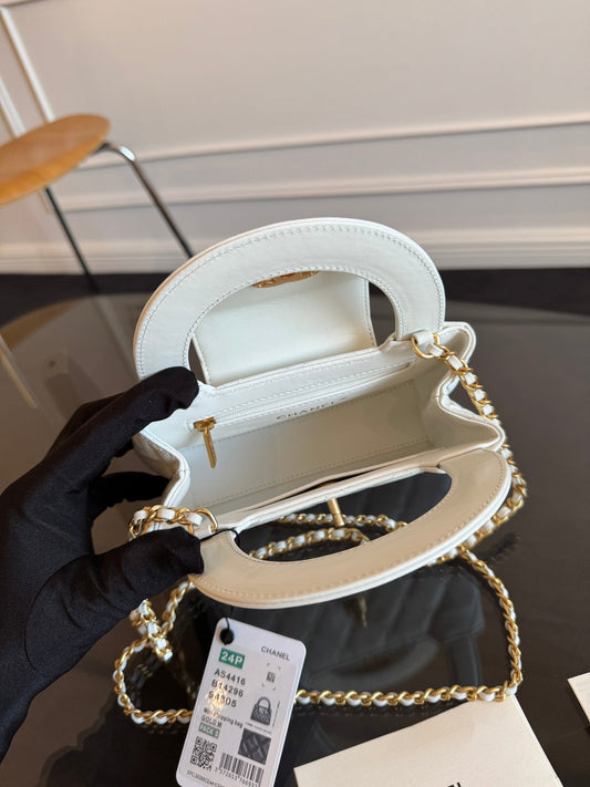 SMALL FLAP BAG 24CM TOP HANDLE BLACK LAMBSKIN GOLD HARDWARE