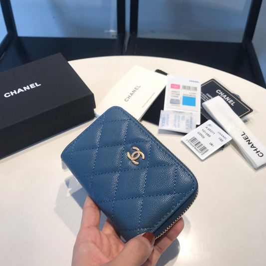 CC ZIPPED CAVIAR PURSE 11 SAPPHIRE CALFSKIN GOLD ICON