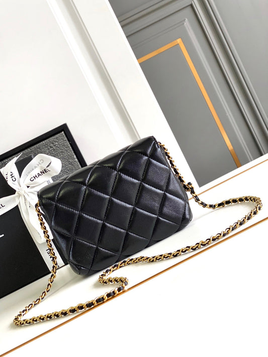 CC MINI 23 FLAP BAG IN BLACK CALFSKIN GOLD HARDWARE