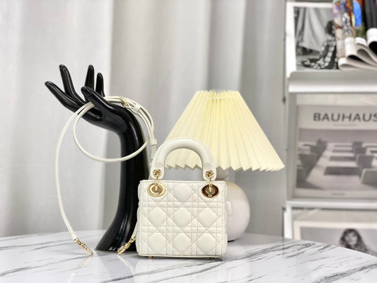 MINI LADY 17 BAG IN WHITE EMBOSSED LAMBSKIN WITH GOLDEN CLASP