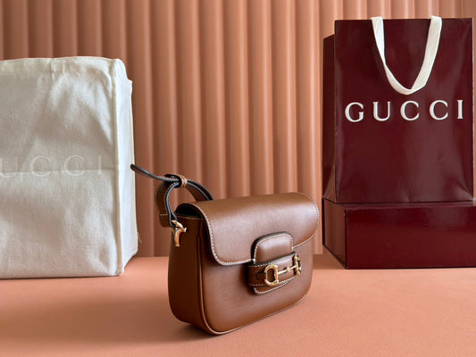 SMALL HORSEBIT 1955 SHOULDER BAG 20 IN BROWN SOFT CALFSKIN LIGHT GOLD HARDWARE