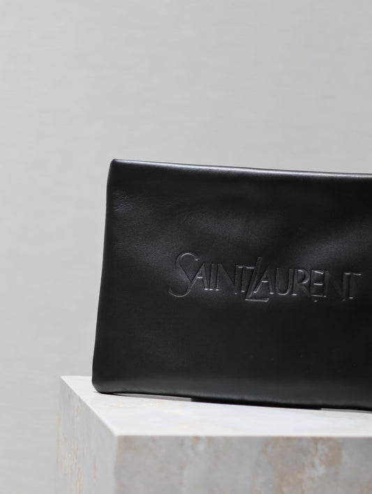 POUCH 30 IN BLACK CALFSKIN WITH EMBOSSED LOGO