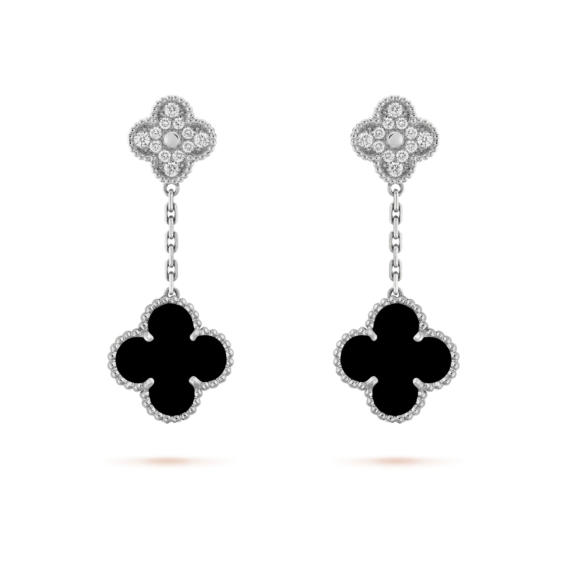 [basloveJW]CLOVER 2 MOTIFS DIAMOND ONYX OHRRINGE SILBER