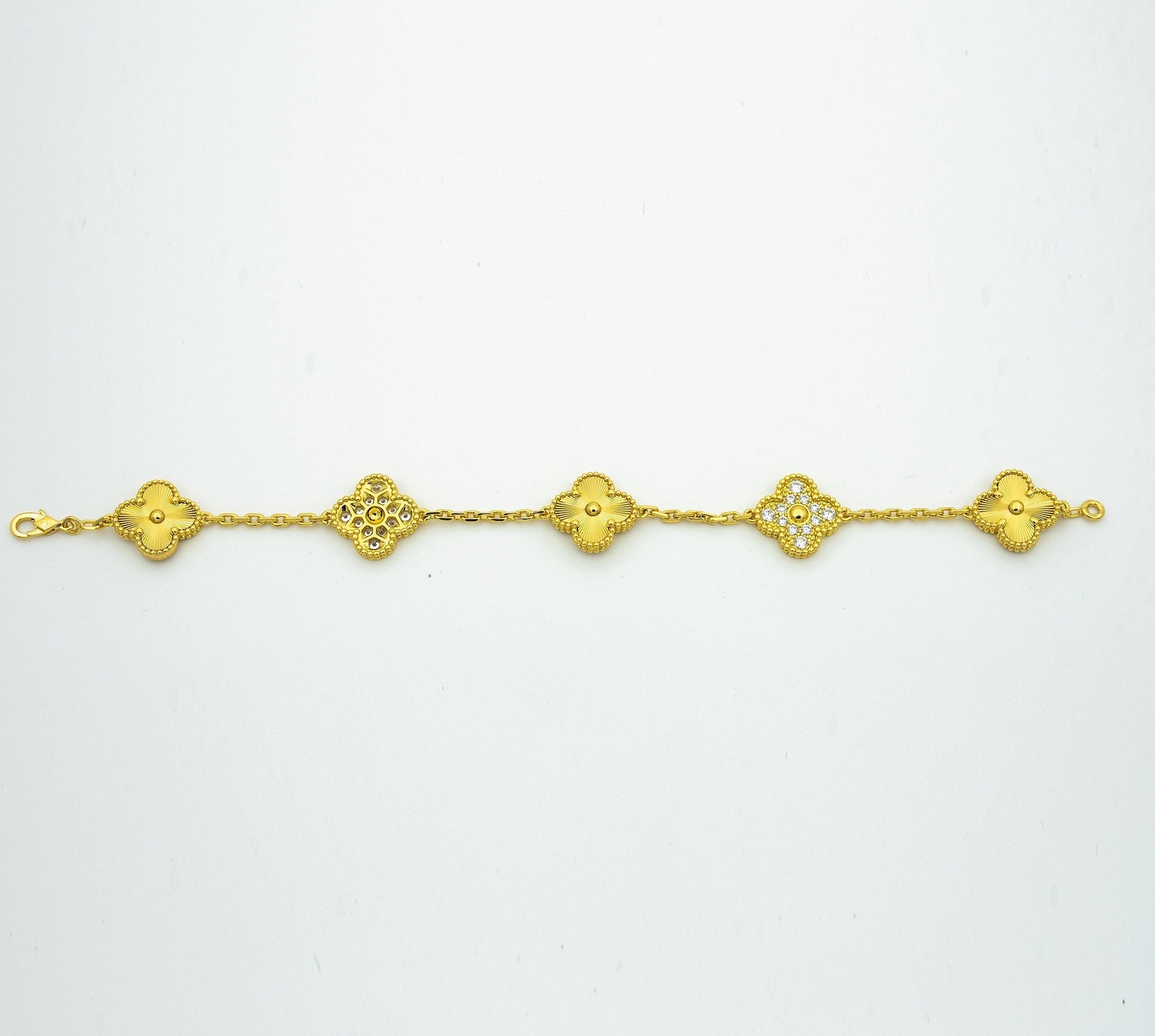 [basloveJW]CLOVER ARMBAND 5 MOTIVE GOLD DIAMANT