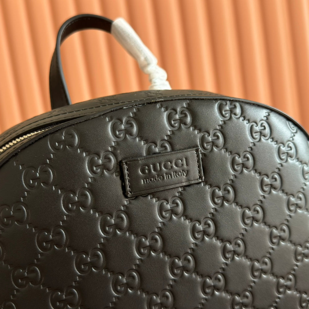 EMBOSSED BACKPACK 40 IN BLACK CALFSKIN SILVER HARDWARE