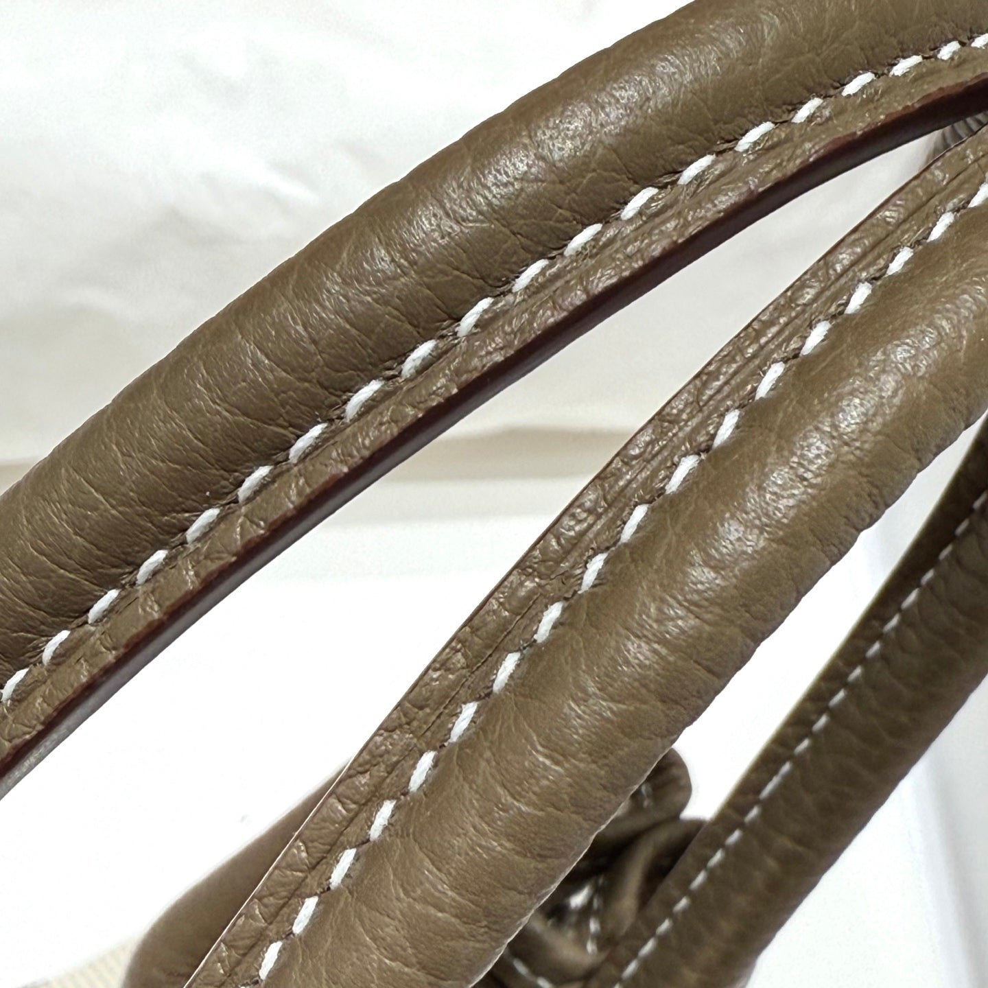 GARDEN PARTY 23CM IN WHITE TOILETS COTTON CANVAS AND TAUPE CALFSKIN
