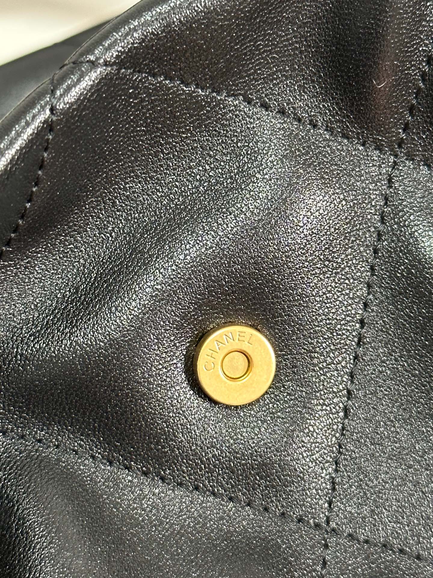 MAXI SHOPPING BAG 36 IN BLACK LAMBSKIN GOLD METALLIC