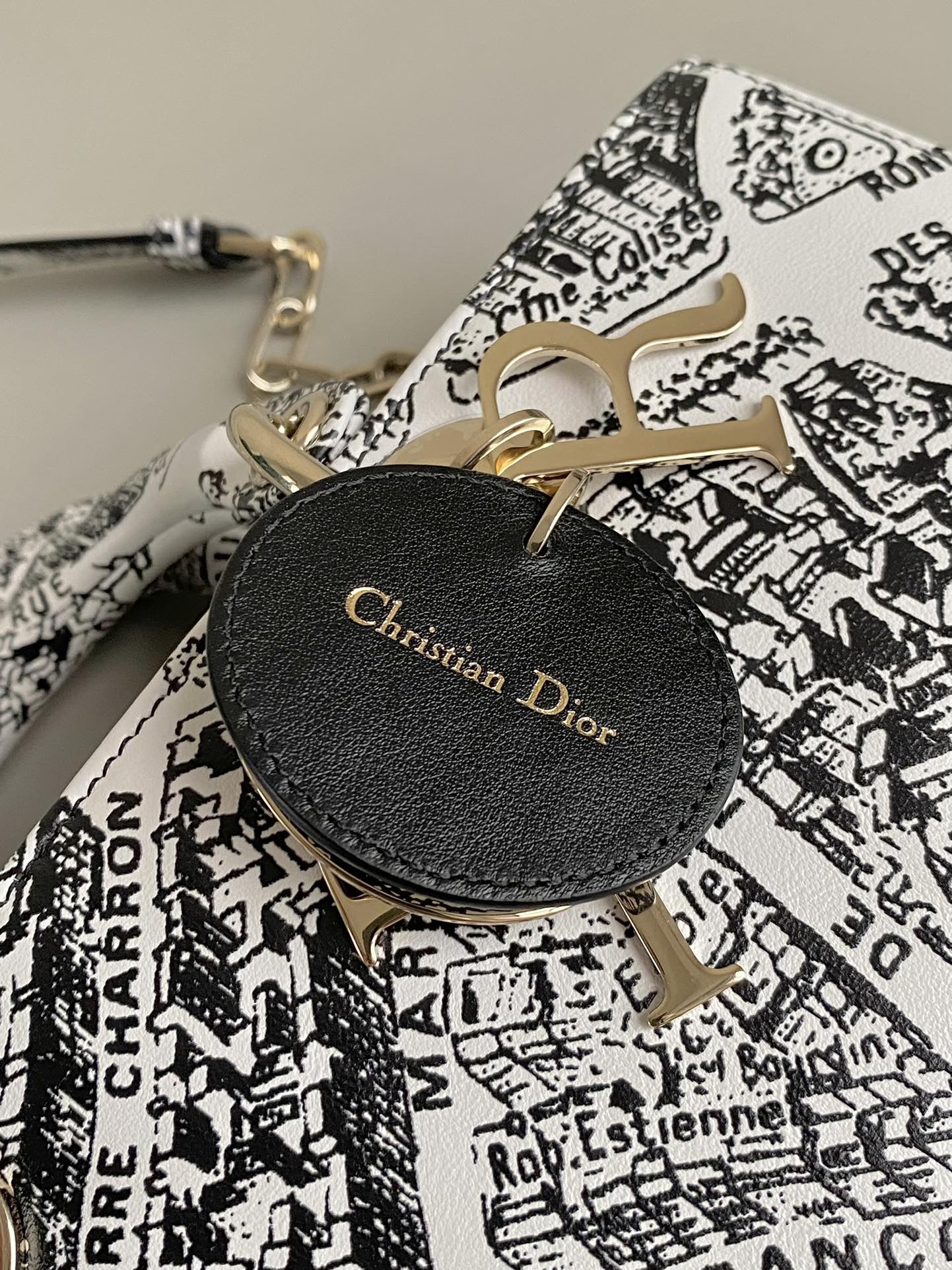 MEDIUM D-JOY 26 BAG IN BLACK WHITE CALFSKIN