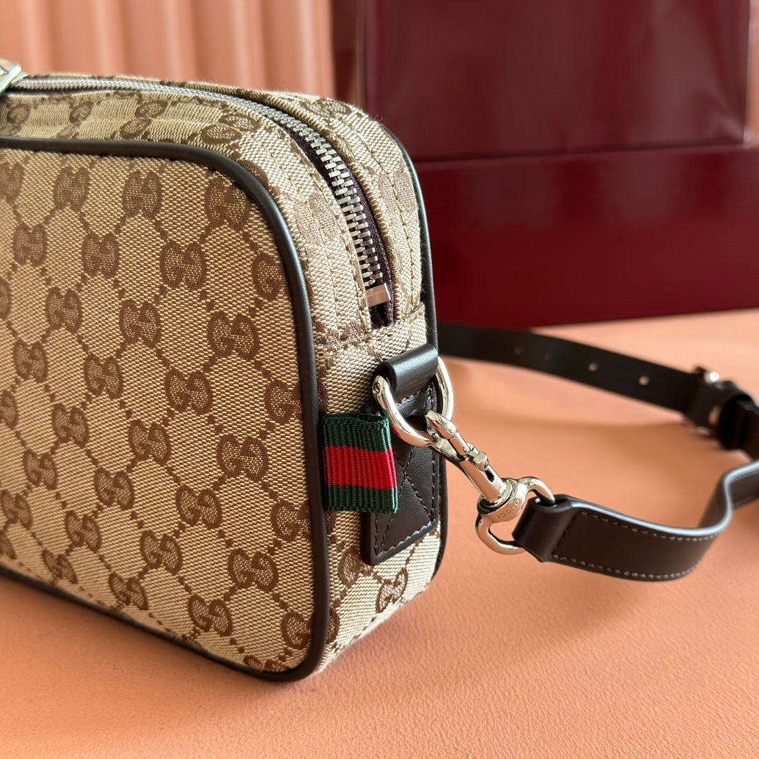SMALL CROSSBODY BAG 23.5 IN BEIGE AND DARK BROWN GG CANVAS
