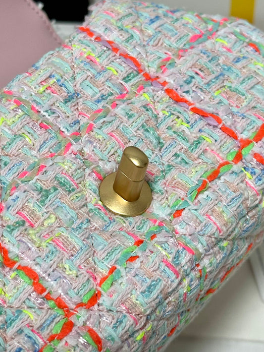 CC MINI 21 FLAP BAG IN LIGHT PINK MIX COLORFUL WOOL TWEED