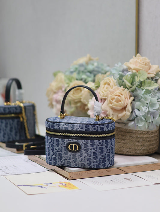 CARO 16 MINI VANITY CASE IN BLUE MONOGRAM OBLIQUE JACQUARD FABRIC