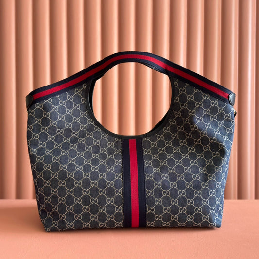 GUCCI GIGLIO LARGE TOTE BAG 60 IN BLUE AND WHITE GG DENIM