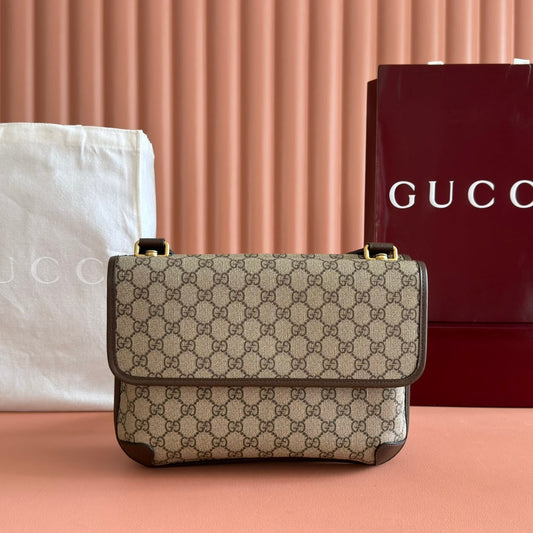 GG SUPREME SHOULDER BAG 20 BROWN IN CANVAS LOGO GOLD HARDWARE