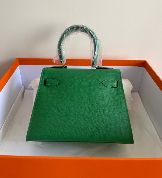 KELLY MINI 20 BAG IN EMERALD GREEN CALFSKIN WITH GOLD HARDWARE (MADE-TO-ODER)