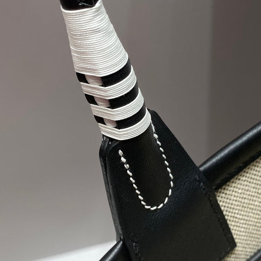 STEEPLE 28 BAG IN OFF-WHITE H CANVAS AND BLACK SWIFT CALFSKIN