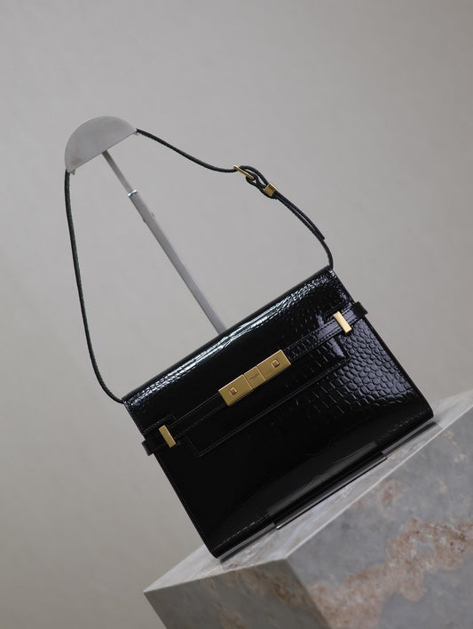 MANHATTAN MEDIUM 29 IN BLACK CROCODILE-EMBOSSED CALFSKIN SILVER BUCKLE