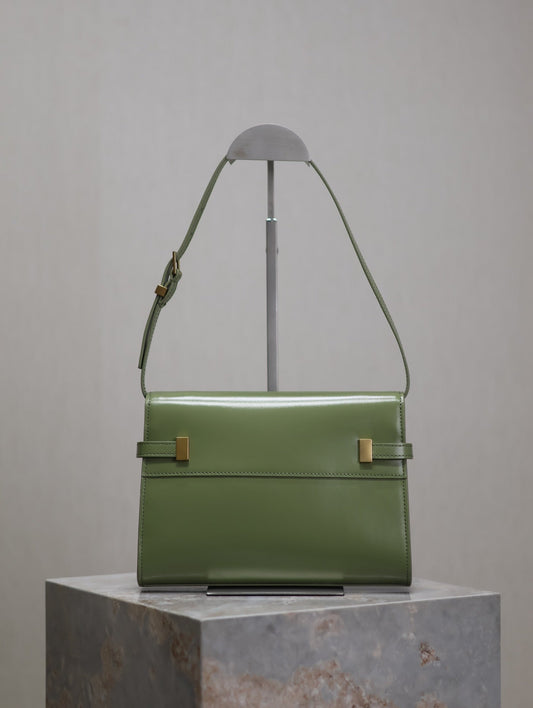MANHATTAN SMALL 24 IN OLIVE GREEN SMOOTH LAMBSKIN GOLD HARDWARE