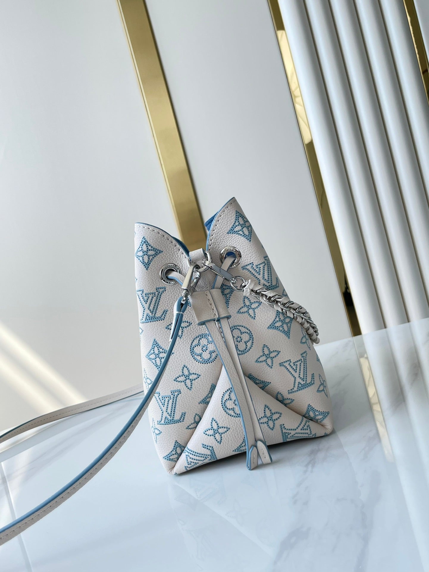 BELLA 22 IN WHITE PERFORATED CALFSKIN SILVER HARDWARE
