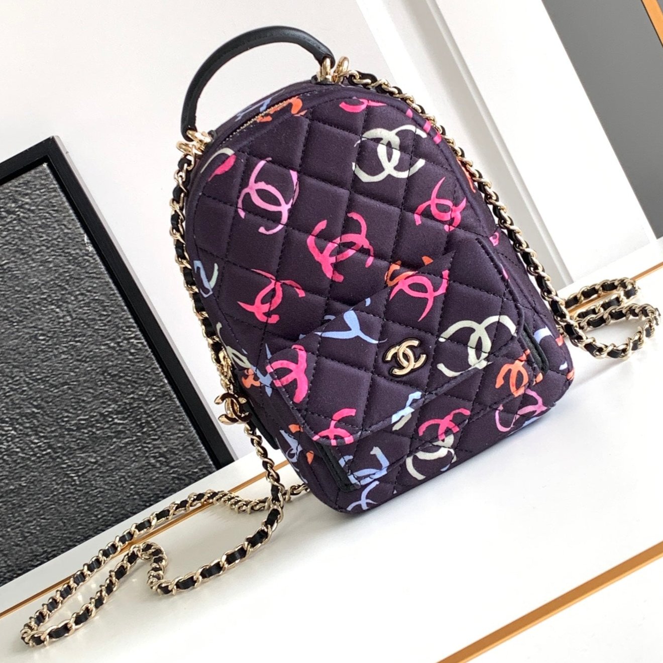 CC CLASSIC MINI 18 BACKPACK COLORFUL WOOL COTTON MIXED FIBERS GOLD TONE METAL