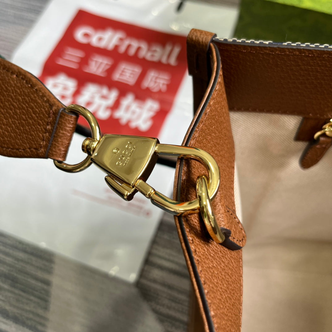 GG LARGE 37 TOTE BAG IN GREY CANVAS AND BROWN CALFSKIN