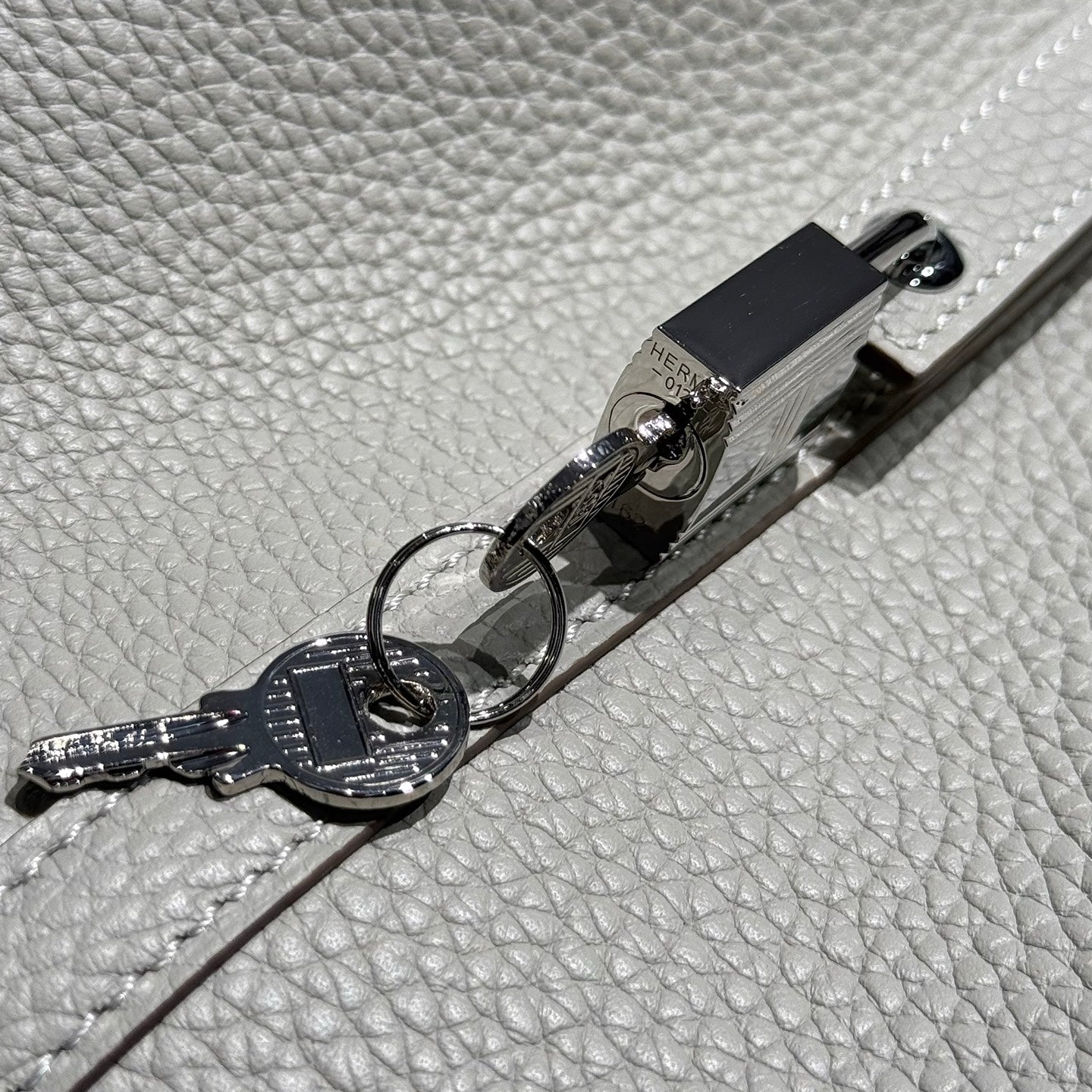 HERMES 25S PICOTIN LOCK 22 IN IVORY CALFSKIN SILVER HARDWARE