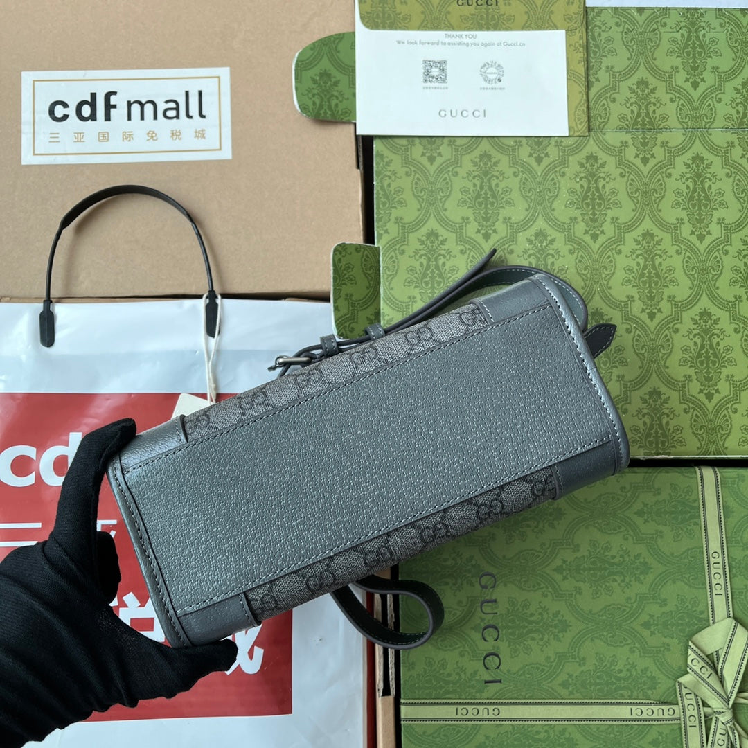 OPHIDIA MESSENGER BAG 35 IN GREY BLACK GG CALFSKIN