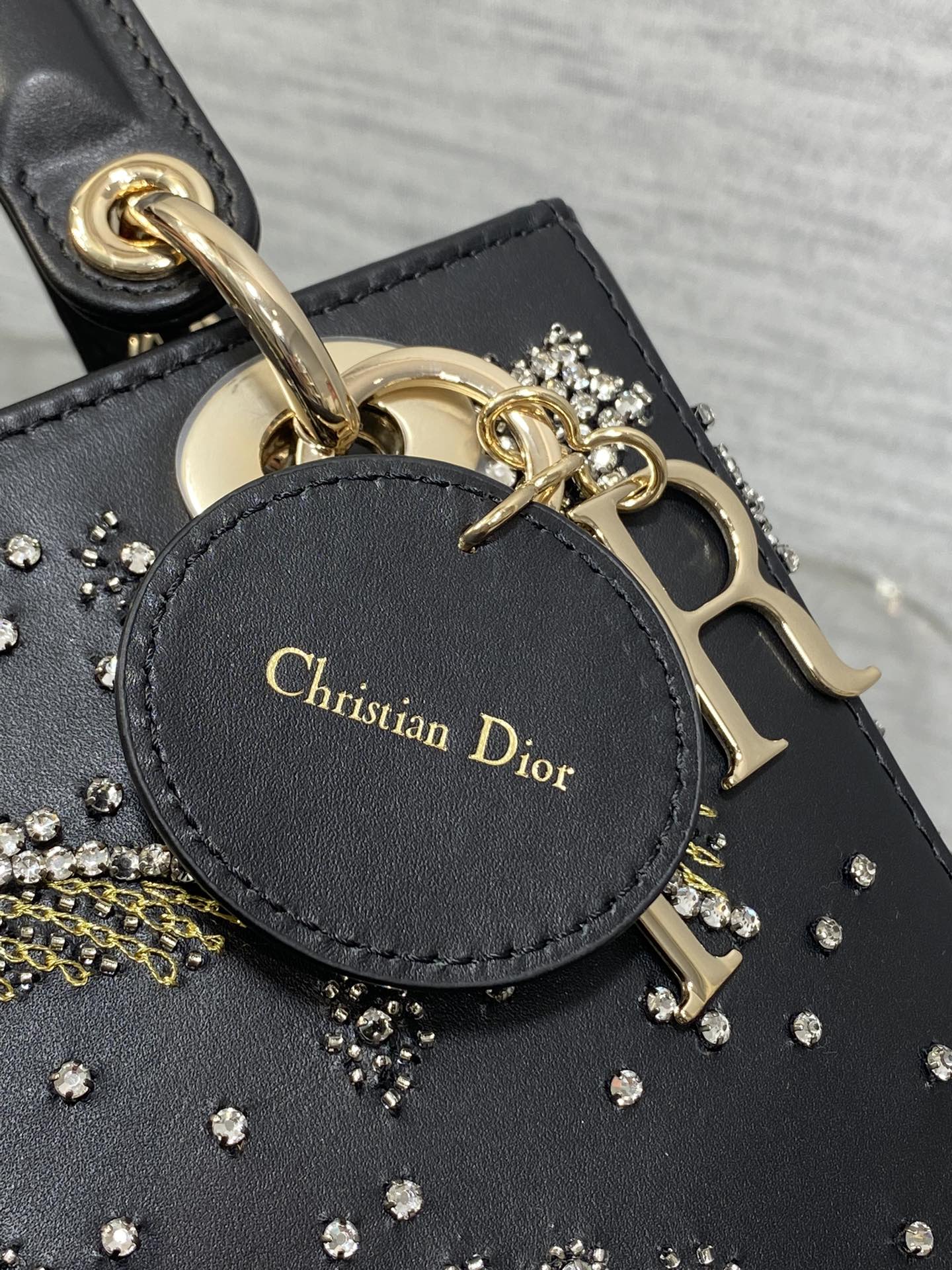 SMALL 20 BAG BLACK LAMBSKIN WITH SHOOTING STAR EMBROIDERY WOMEN