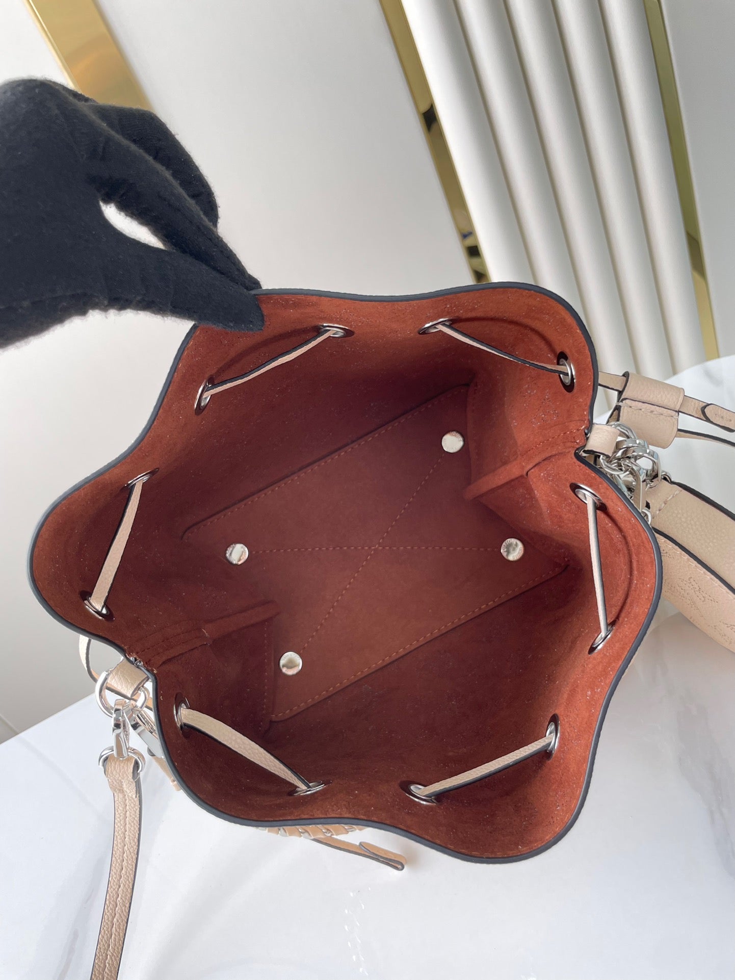 ?Material: Monogram perforated calfskin
