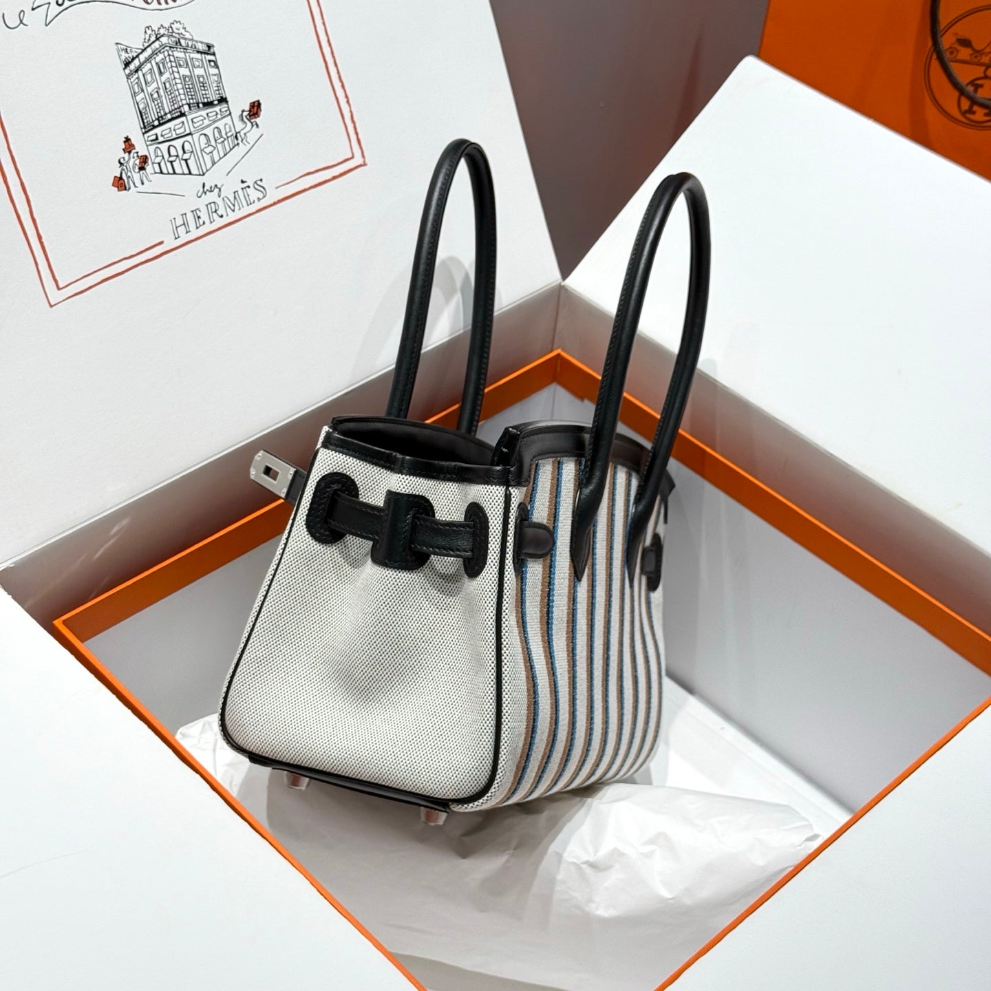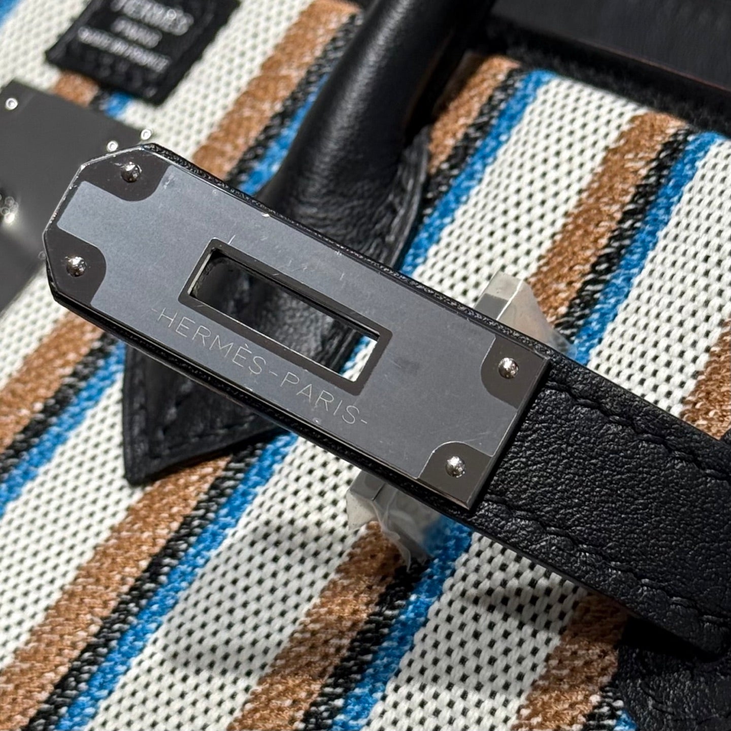BIRKIN SHOULDER 29 IN BLACK CALFSKIN ÉCRU/NOIR/FAUVE/NOIR/BLEU ZANZIBAR EMBROIDERY CANVAS