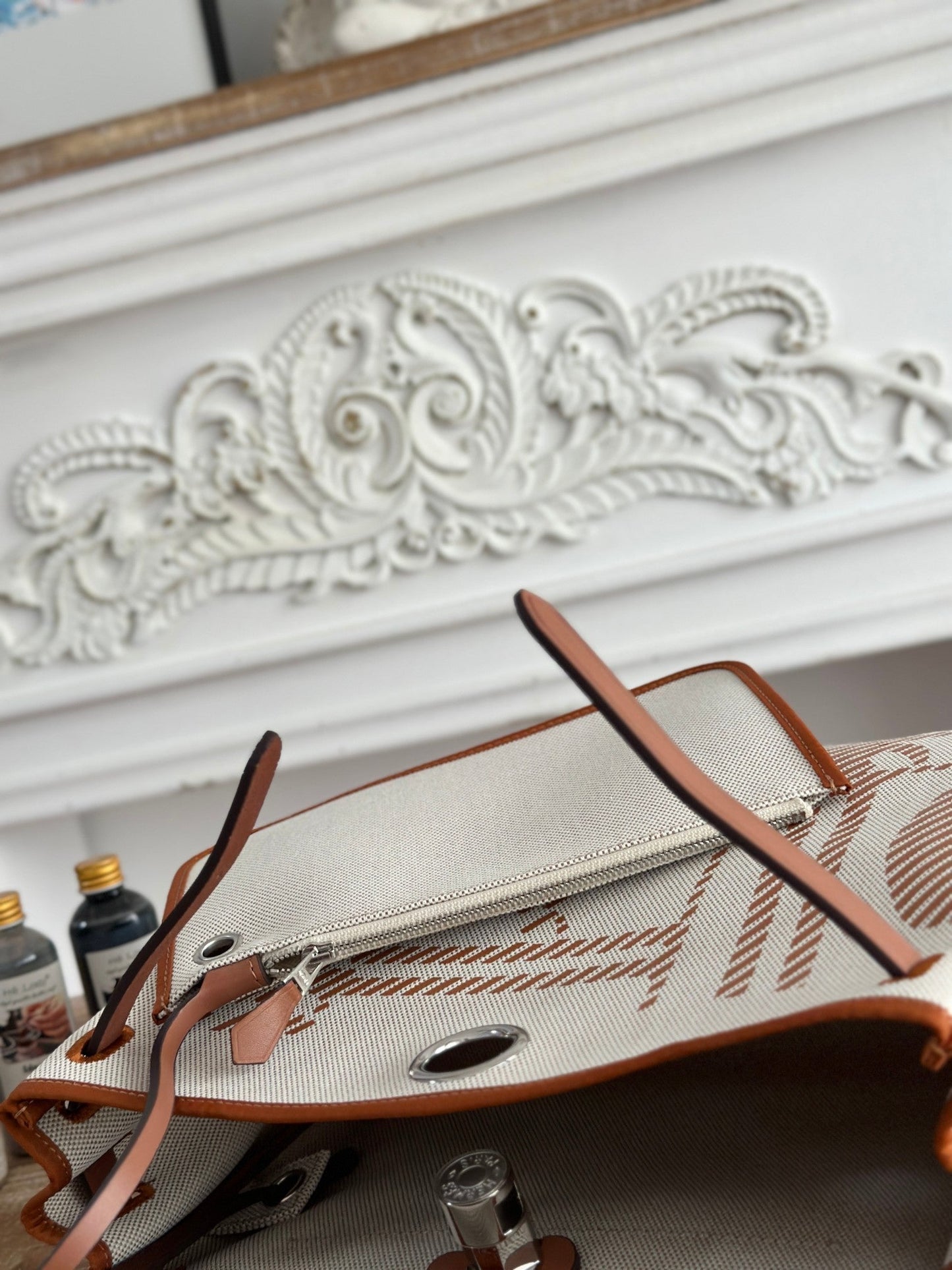BOLSO HERBAG ZIP 31 RETOURNE BAG IN OFF-WHITE MIX BROWN H VIKING CANVAS AND COWHIDE