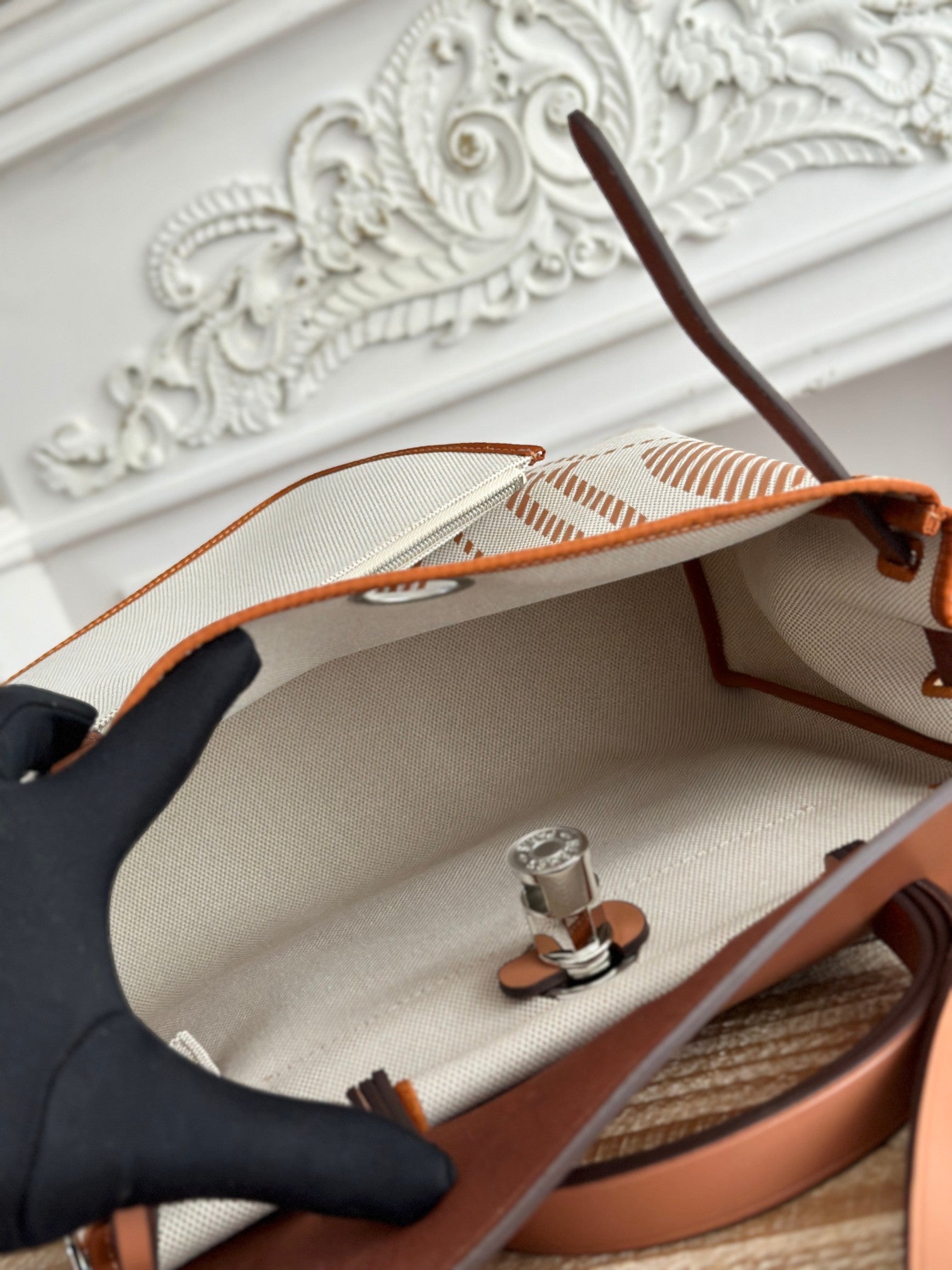 - Color: Off-white mix brown