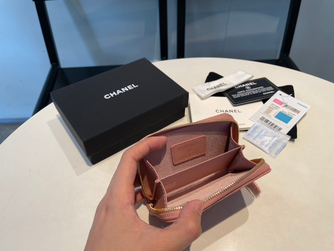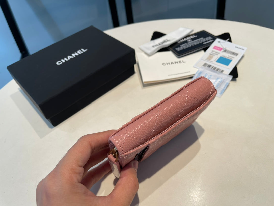 CC ZIPPED COIN PURSE 11 PEACH GRAINED CALFSKIN