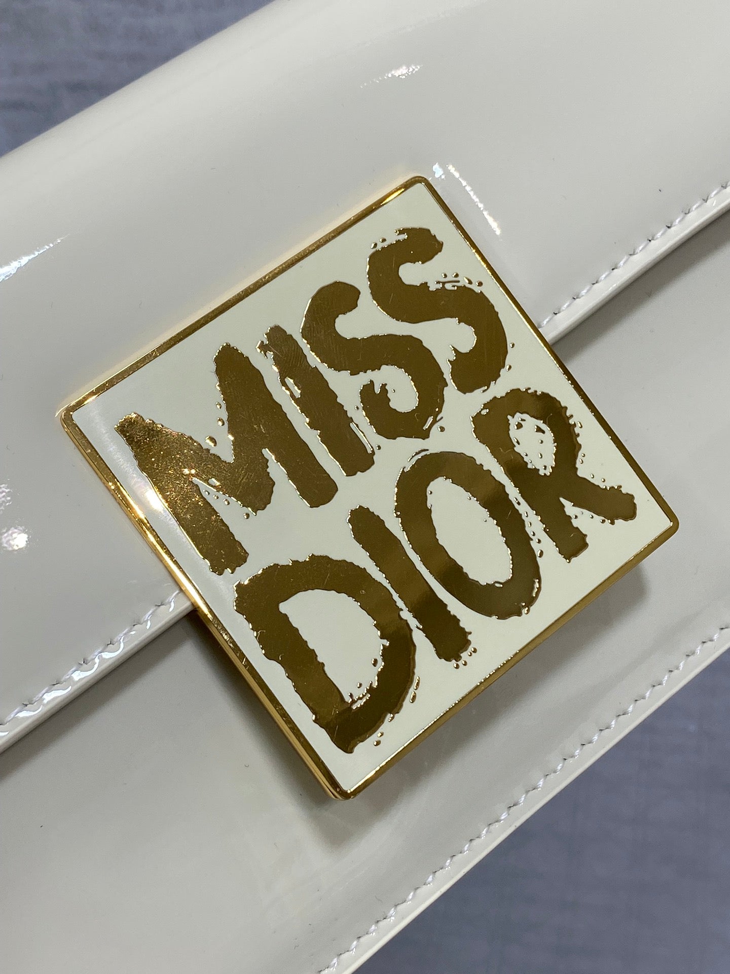 FLAP BAG 18 IN WHITE PATENT CALFSKIN