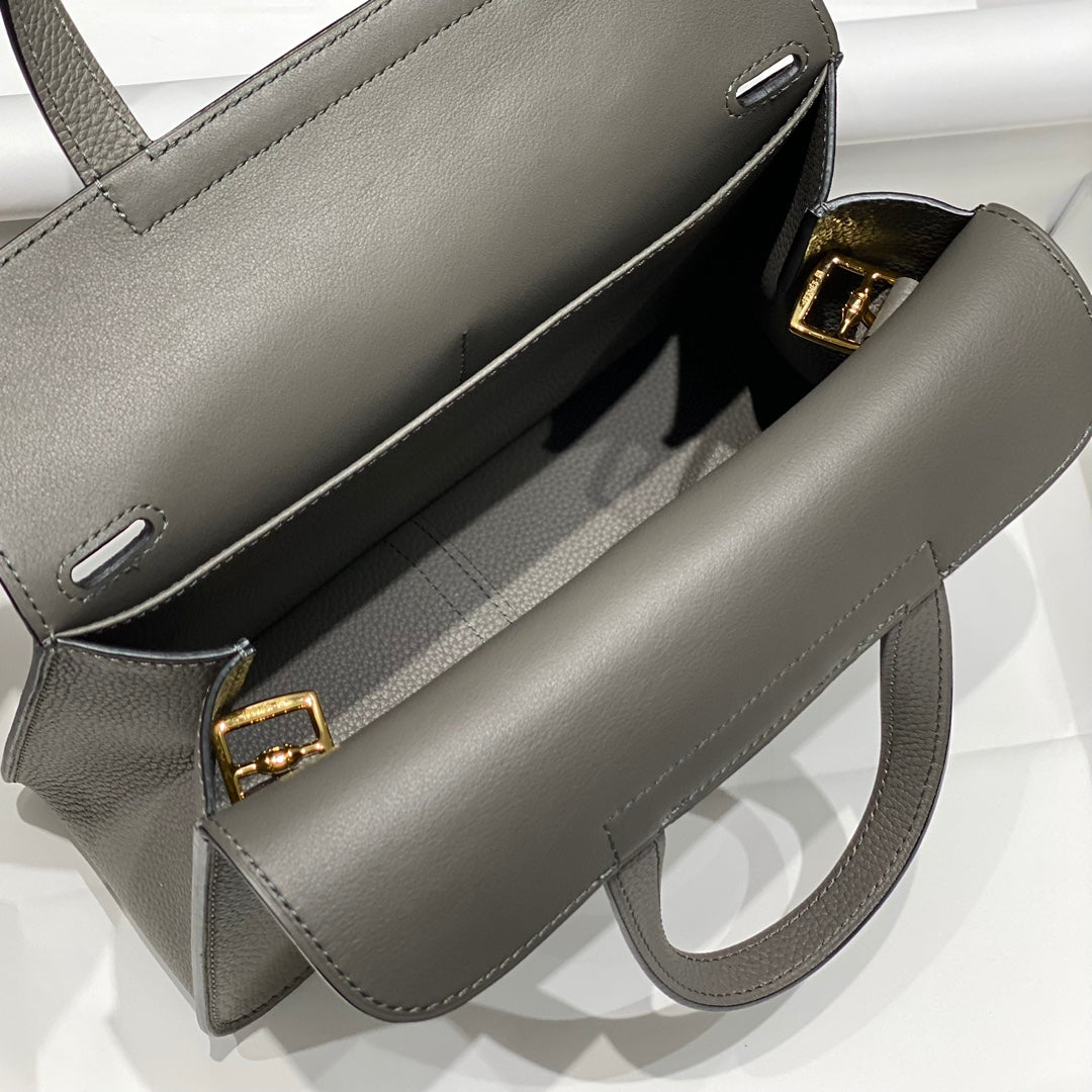 HALZAN 25 HANDLE BAG IN GREY GRAINED CALFSKIN