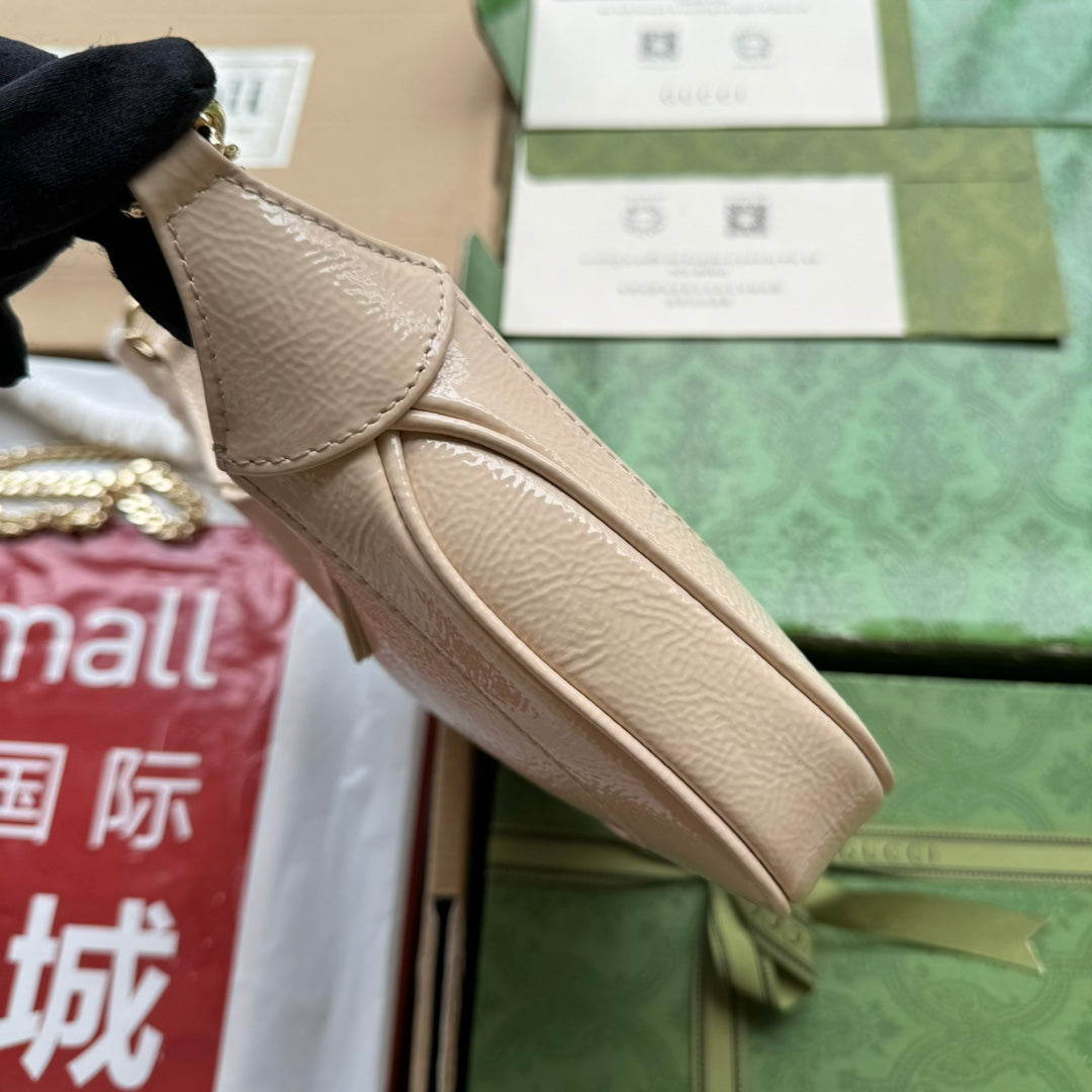 JACKIE NOTTE MINI BAG 19 IN BEIGE CRACKED LACQUER CALFSKIN GOLD HARDWARE