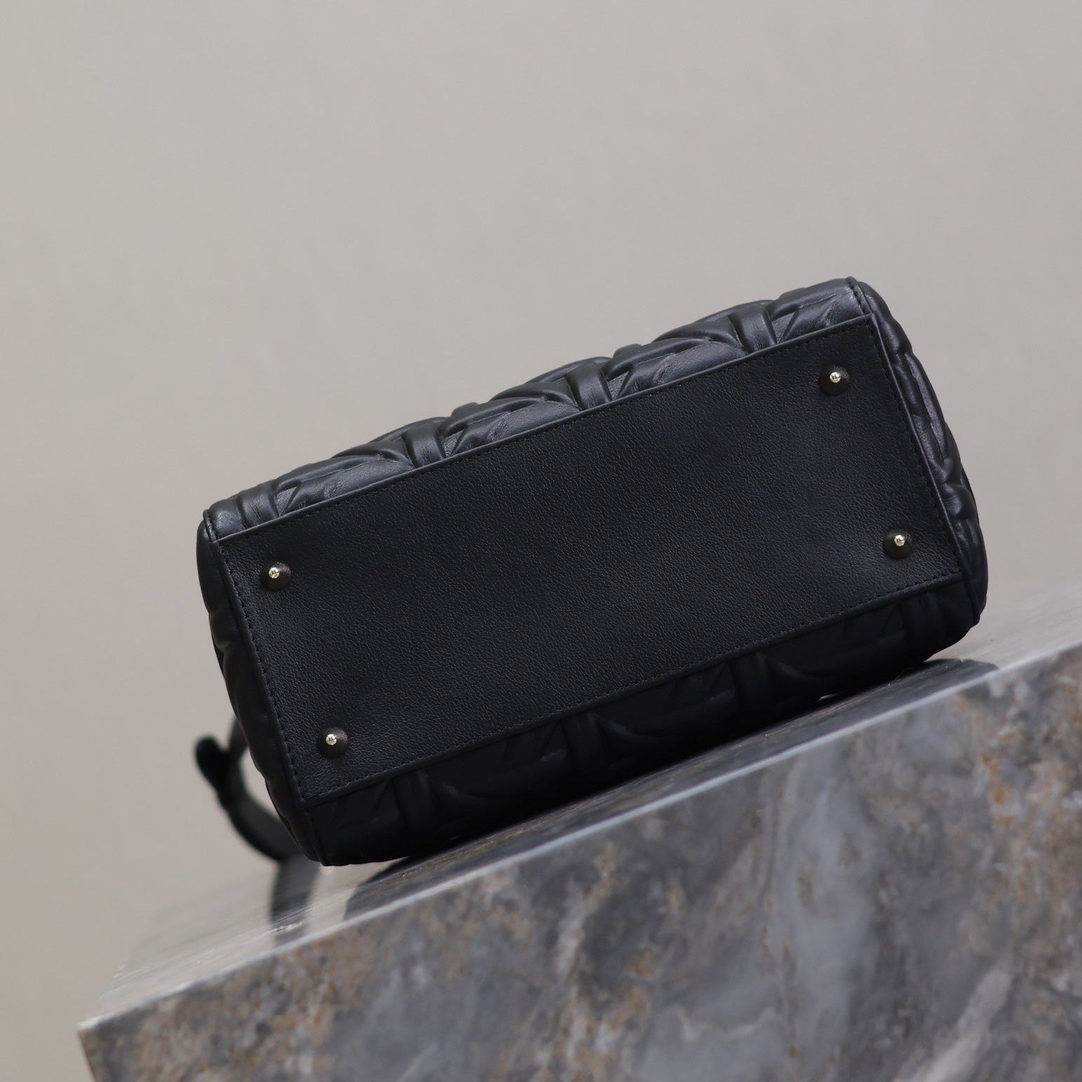 LADY BAG 24 IN BLACK GRAPHIC CANNAGE CALFSKIN PALE GOLD-FINISH METAL CHARMS